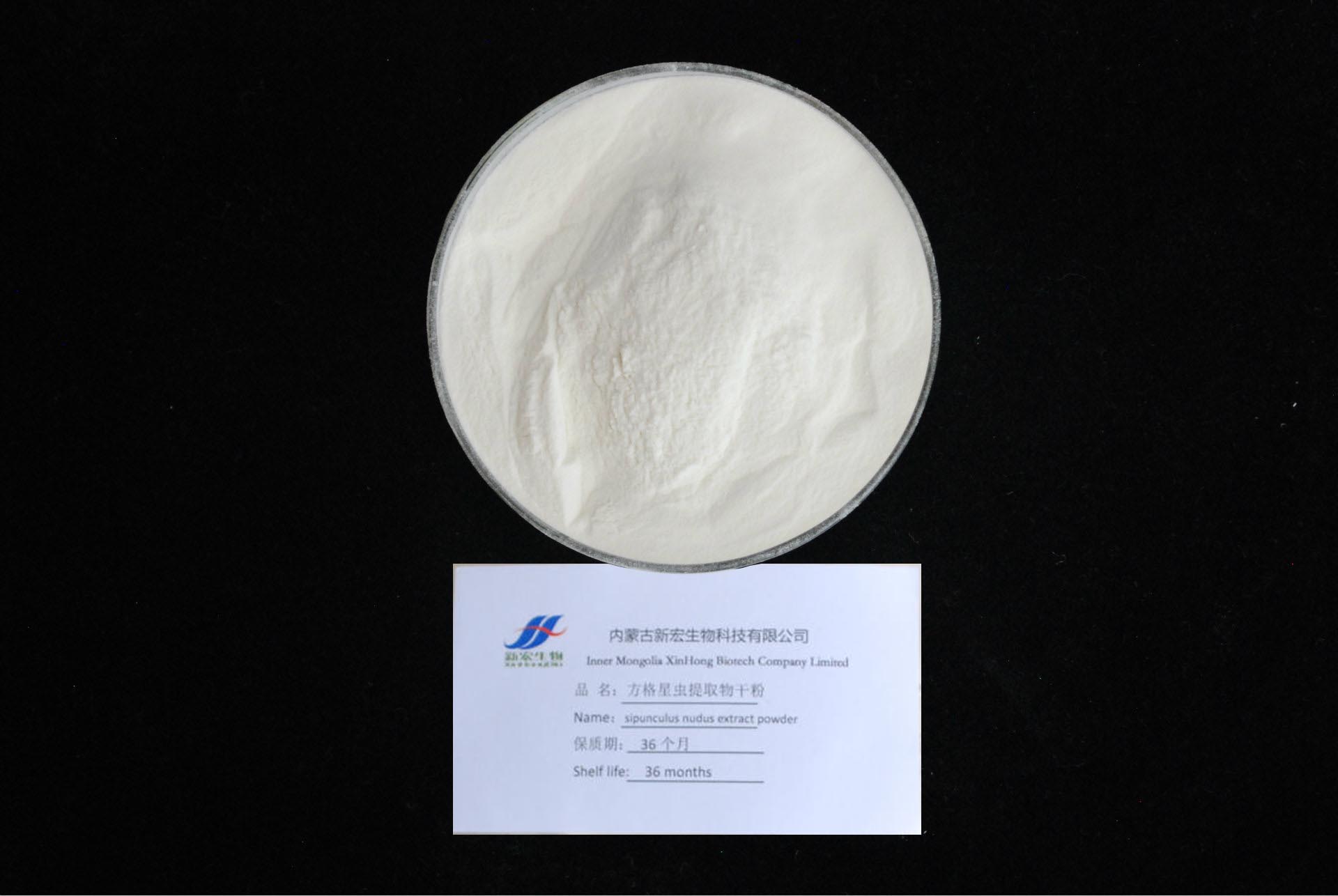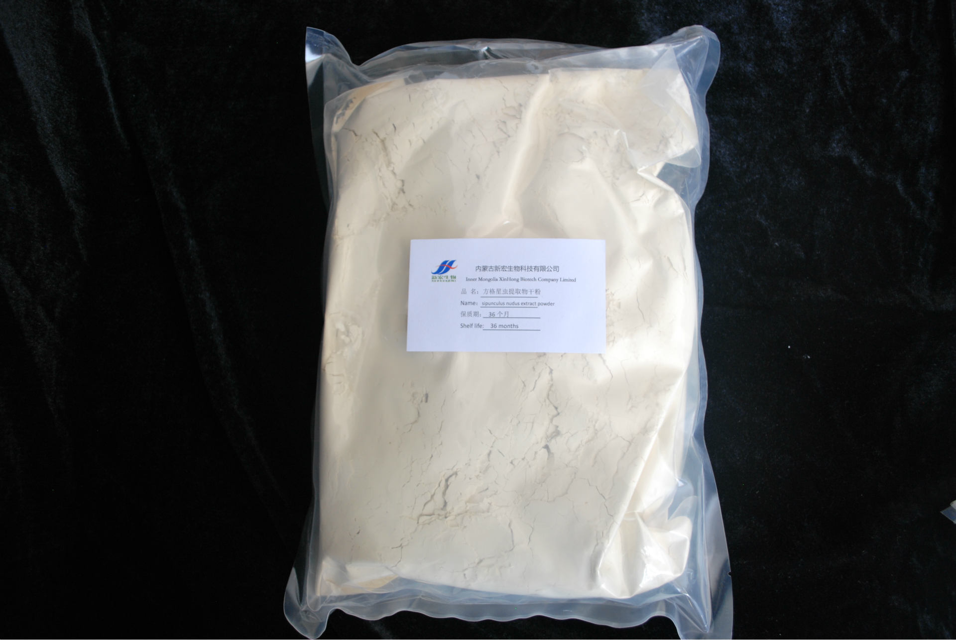 本产品以广西北海新鲜或干燥方格星虫为原料,经生物定向酶切技术提取,最大限度保留天然多肽和多糖的前提下,经超滤、喷雾干燥等工艺生产的方格星虫提取物干粉。