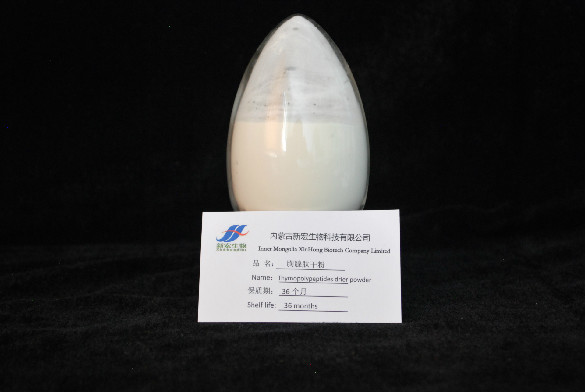 本品以新生牛胸腺或猪胸腺为原料,经生化提取、超滤、干燥制得的淡黄色粉末。