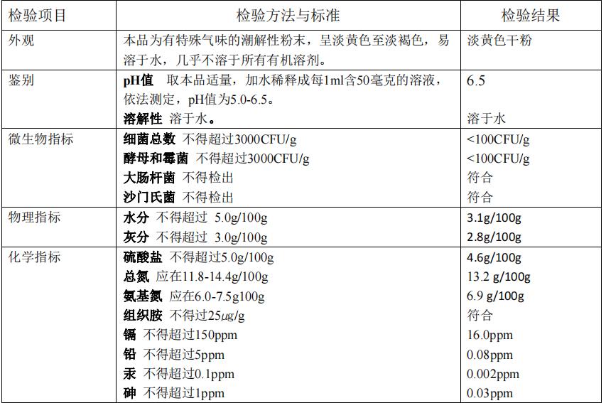 品有吸湿性,有异味,为淡黄色至淡褐色粉末。
